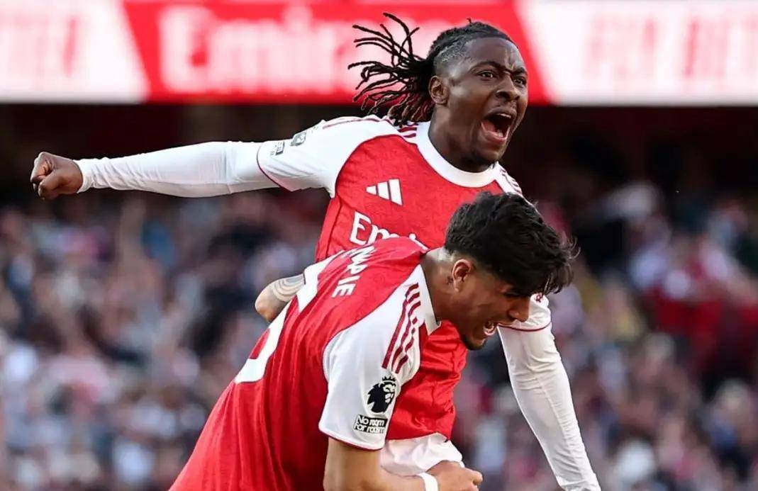 比赛开始后,阿森纳迅速进入状态。 第9分钟,他们就取得了梦幻开局。 一次战术角球配合中,哈弗茨在禁区线附近回做,跟进的埃泽在禁区外迎球抽射,轰出一脚直挂死角的世界波,皮球应声入网。 这是阿森纳在英超历史上对阵纽卡斯尔联打入的第100粒进球。